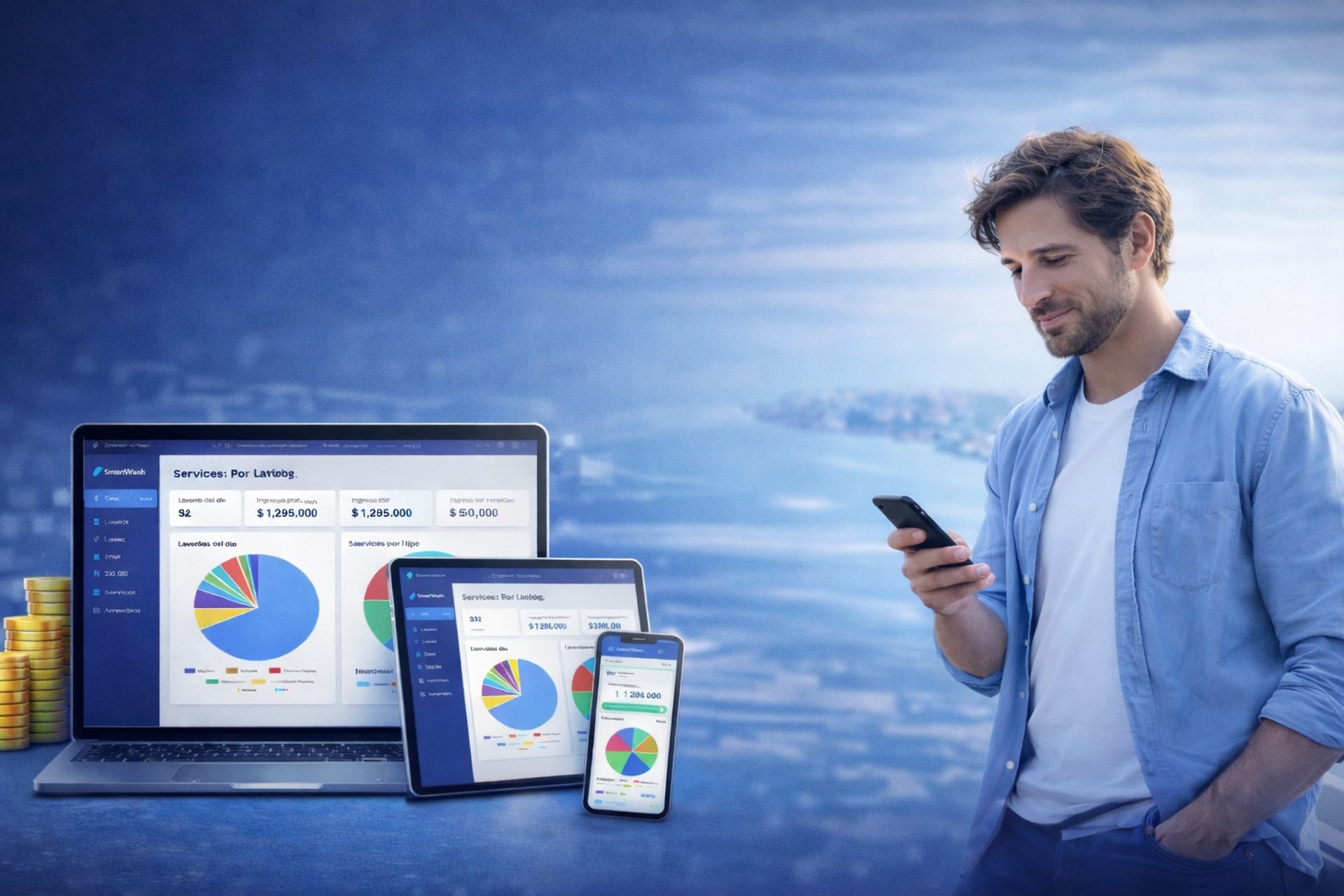 SmartWash te ofrece control total y en tiempo real para que tu lavadero funcione sin complicaciones.