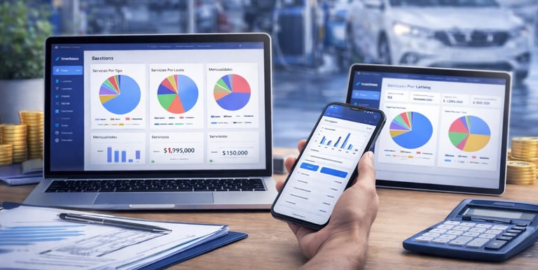 Control total de tu lavadero desde cualquier dispositivo, en tiempo real.